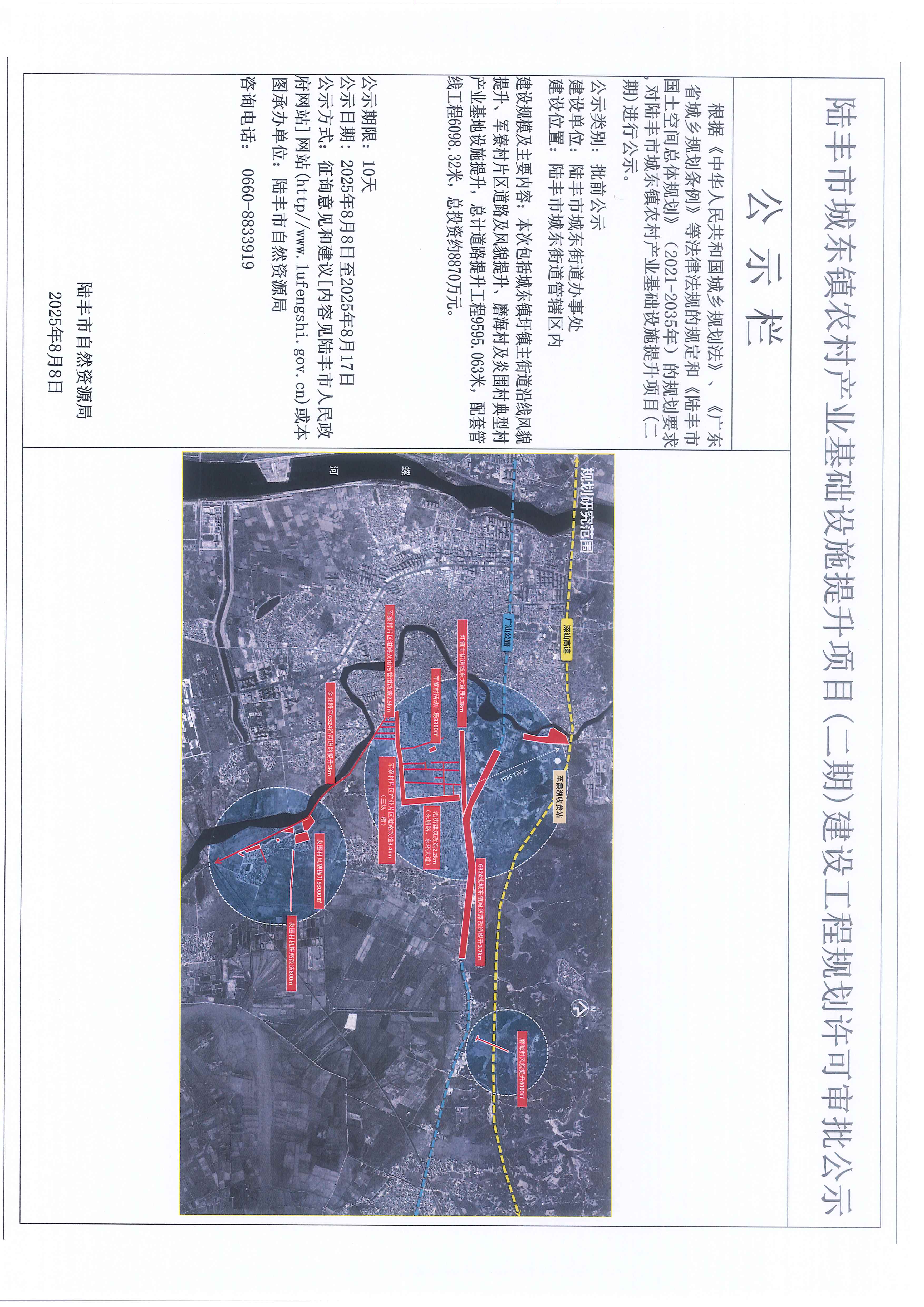 陸豐市城東鎮(zhèn)農村產業(yè)基礎設施提升項目(二期)建設工程規(guī)劃許可審批公示
