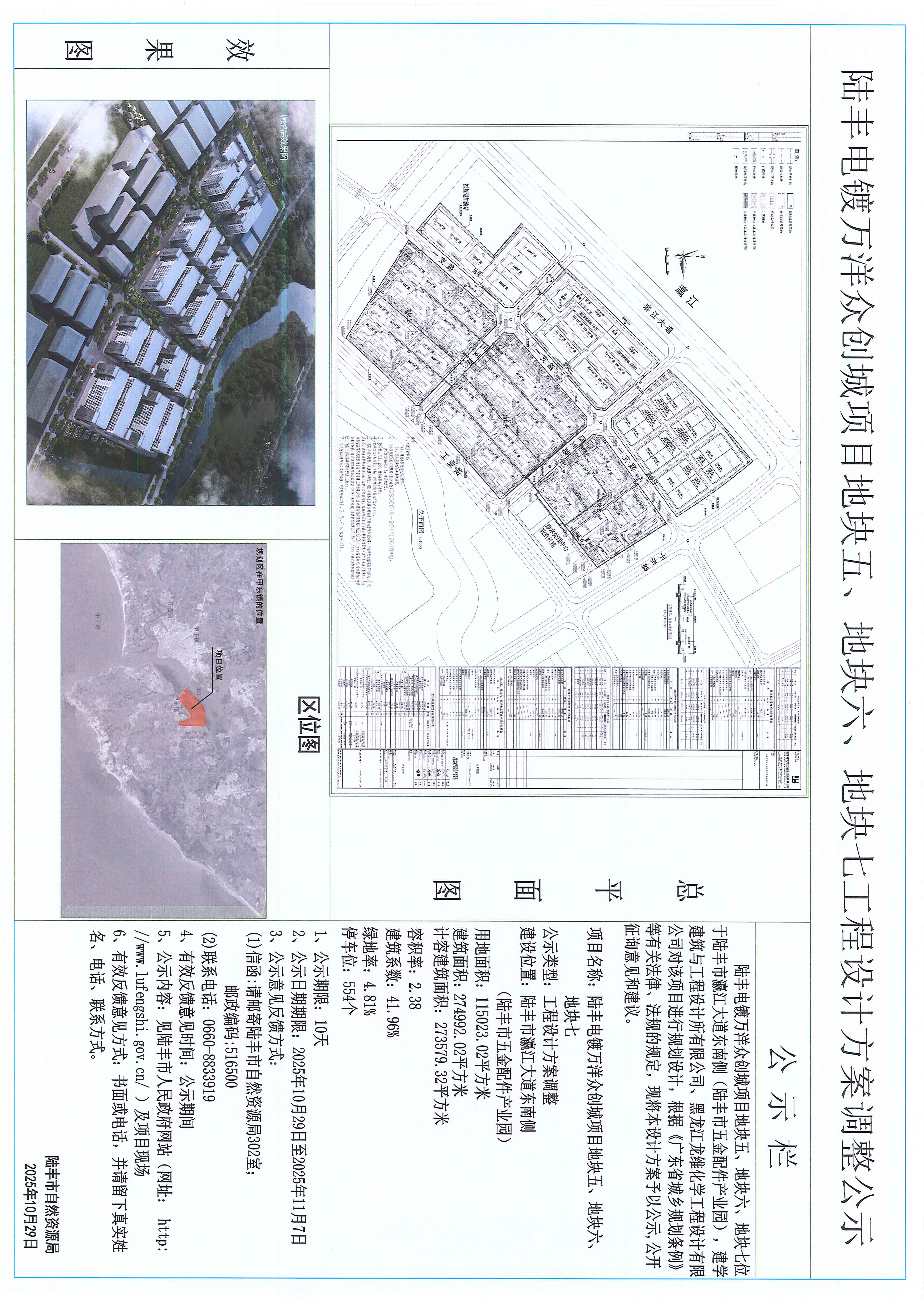 陸豐電鍍?nèi)f洋眾創(chuàng)城項目地塊五、地塊六、地塊七工程設計方案調(diào)整公示