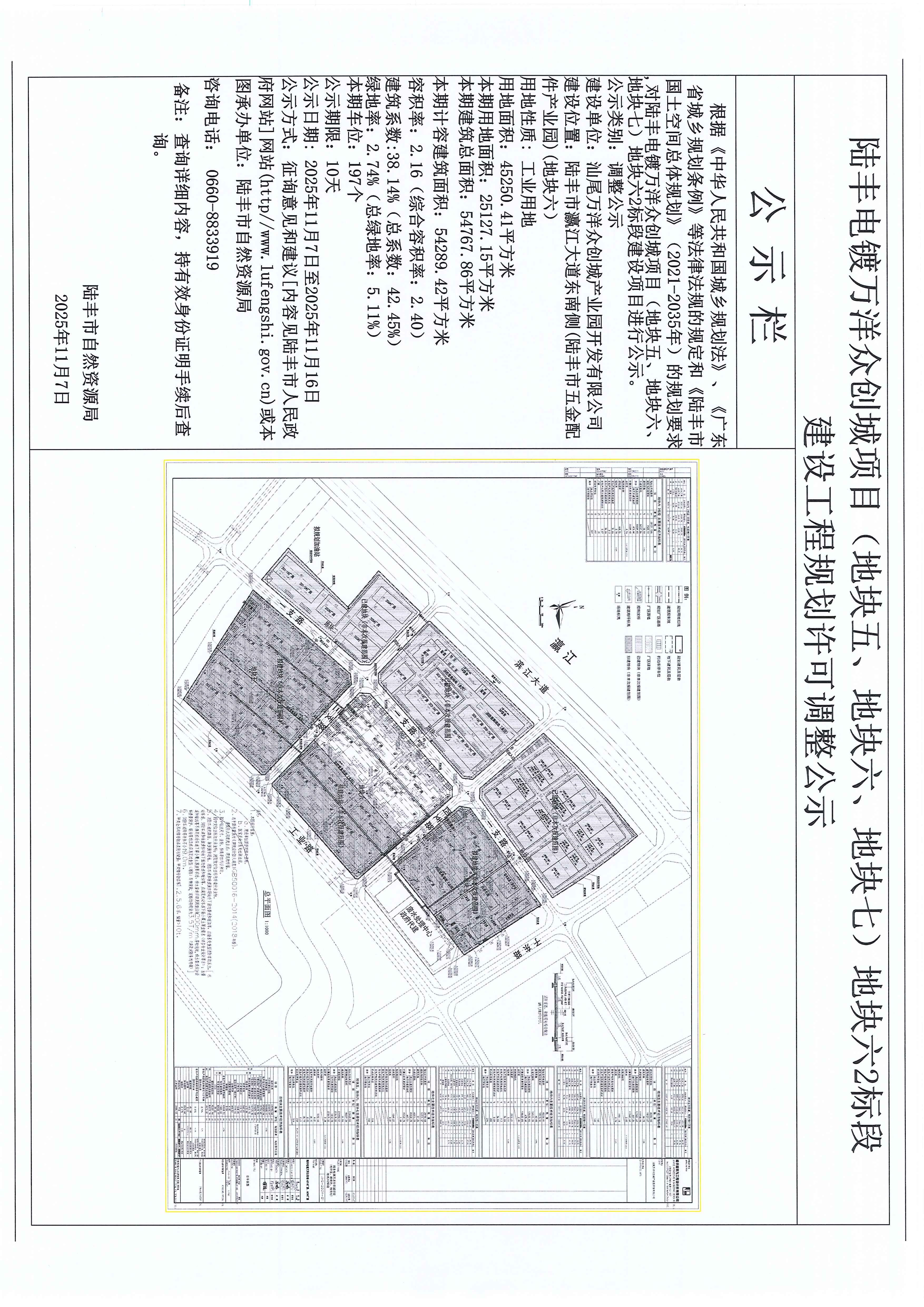 陸豐電鍍?nèi)f洋眾創(chuàng)城項目(地塊五、地塊六、地塊七)地塊六2標(biāo)段建設(shè)工程規(guī)劃許可調(diào)整公示