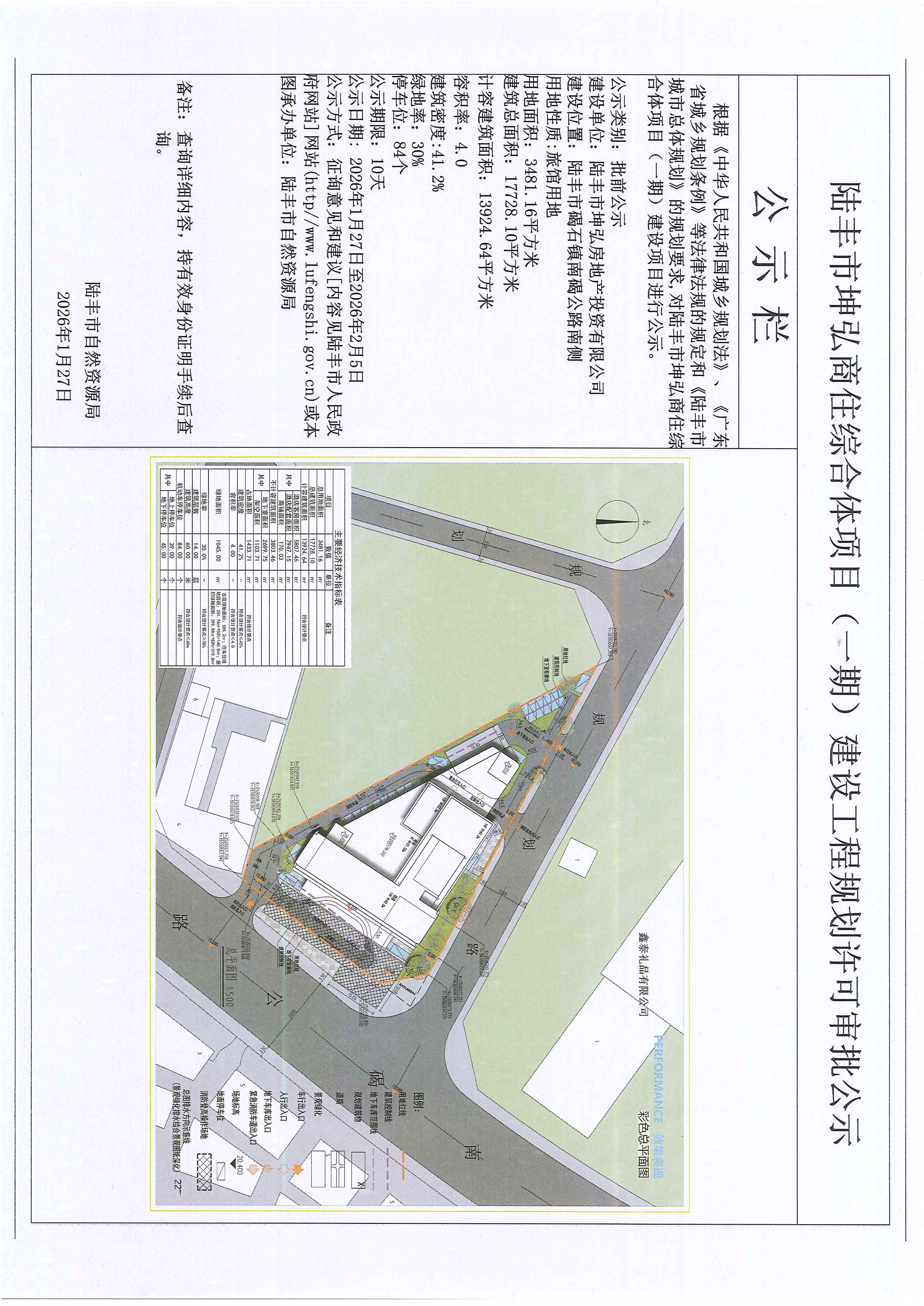 陸豐市坤弘商住綜合體項目(一期)建設(shè)工程規(guī)劃許可審批公示